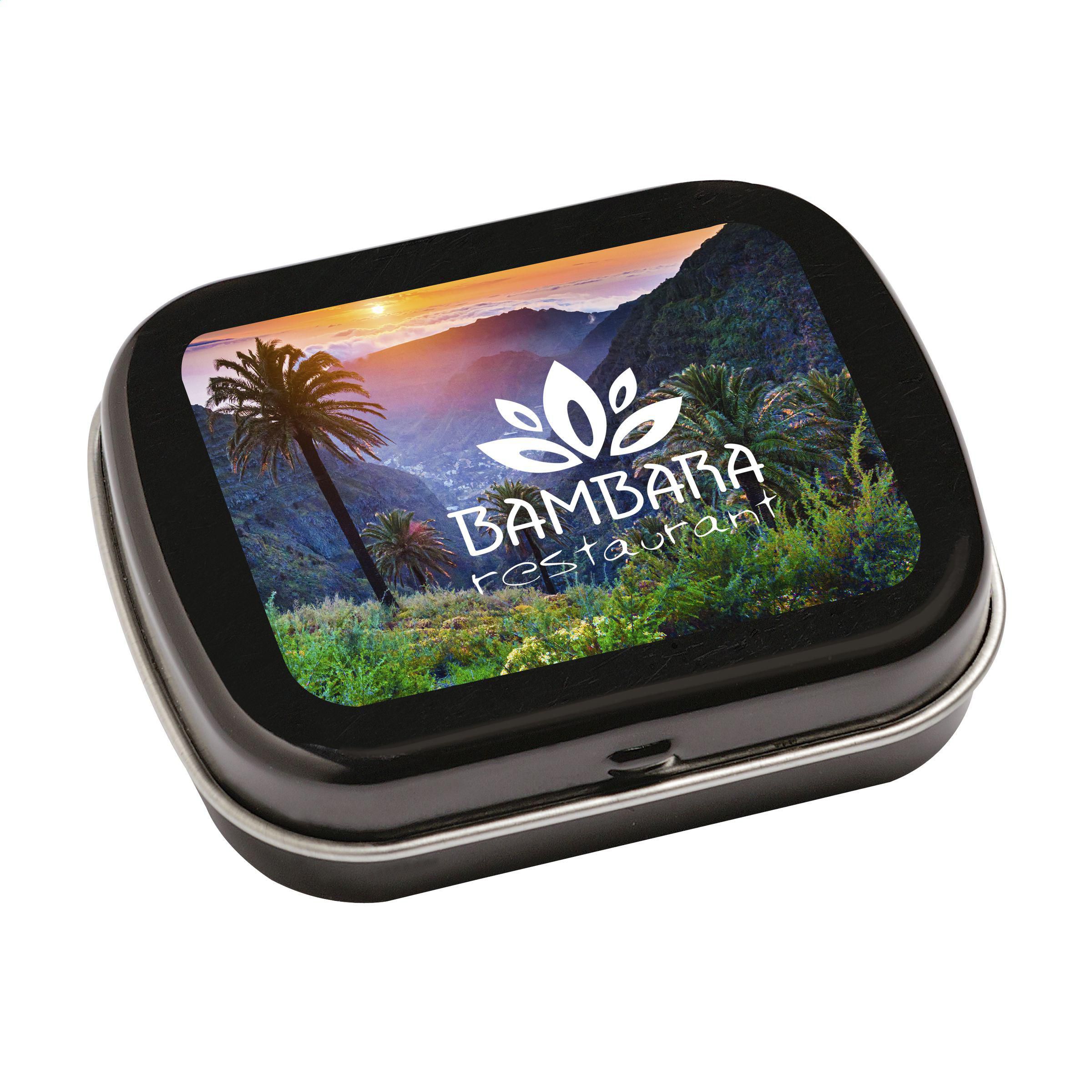 1. DETAILS DU PRODUITBoîte de bonbons en métal mat remplie avec environ 25 g de pastilles à la menthe. |