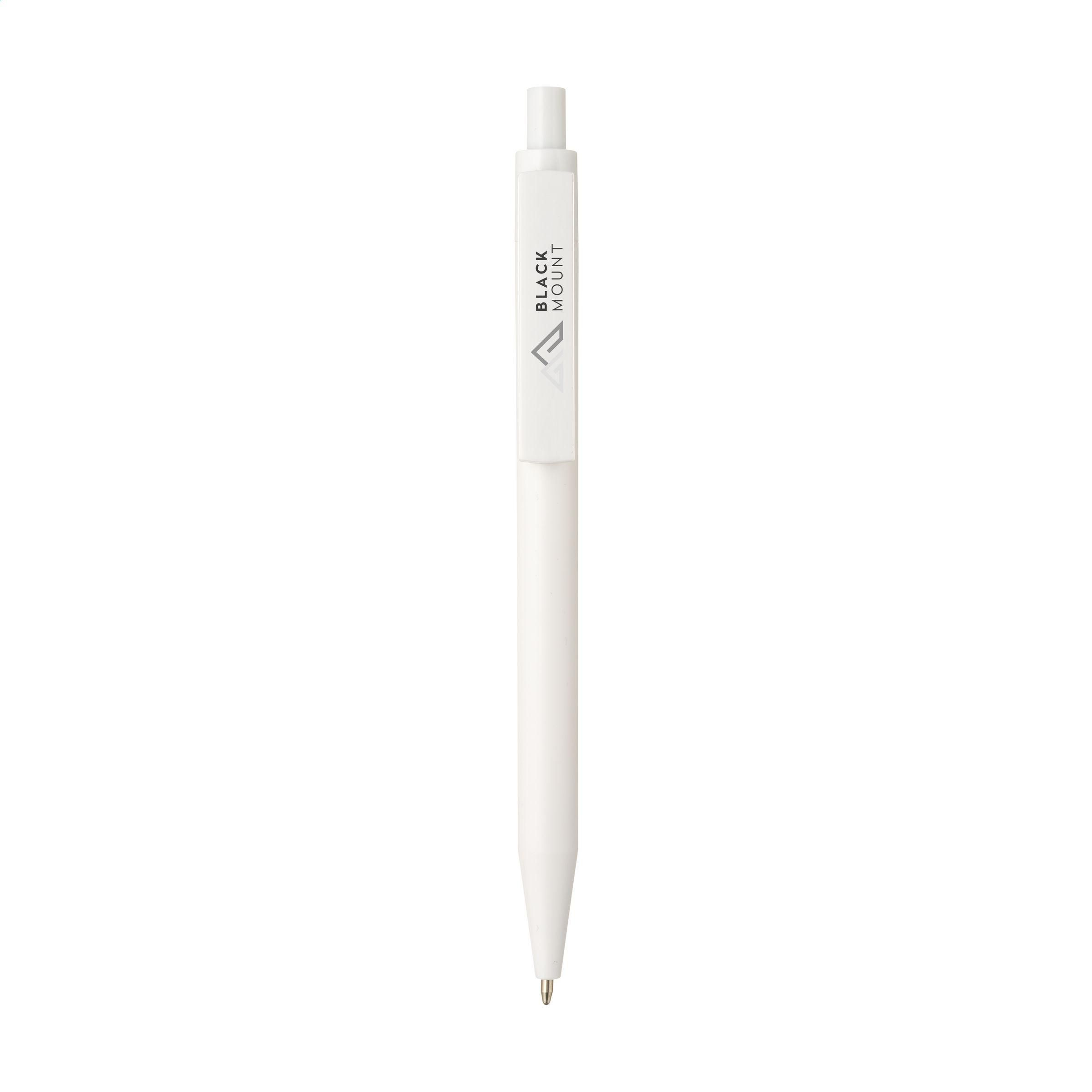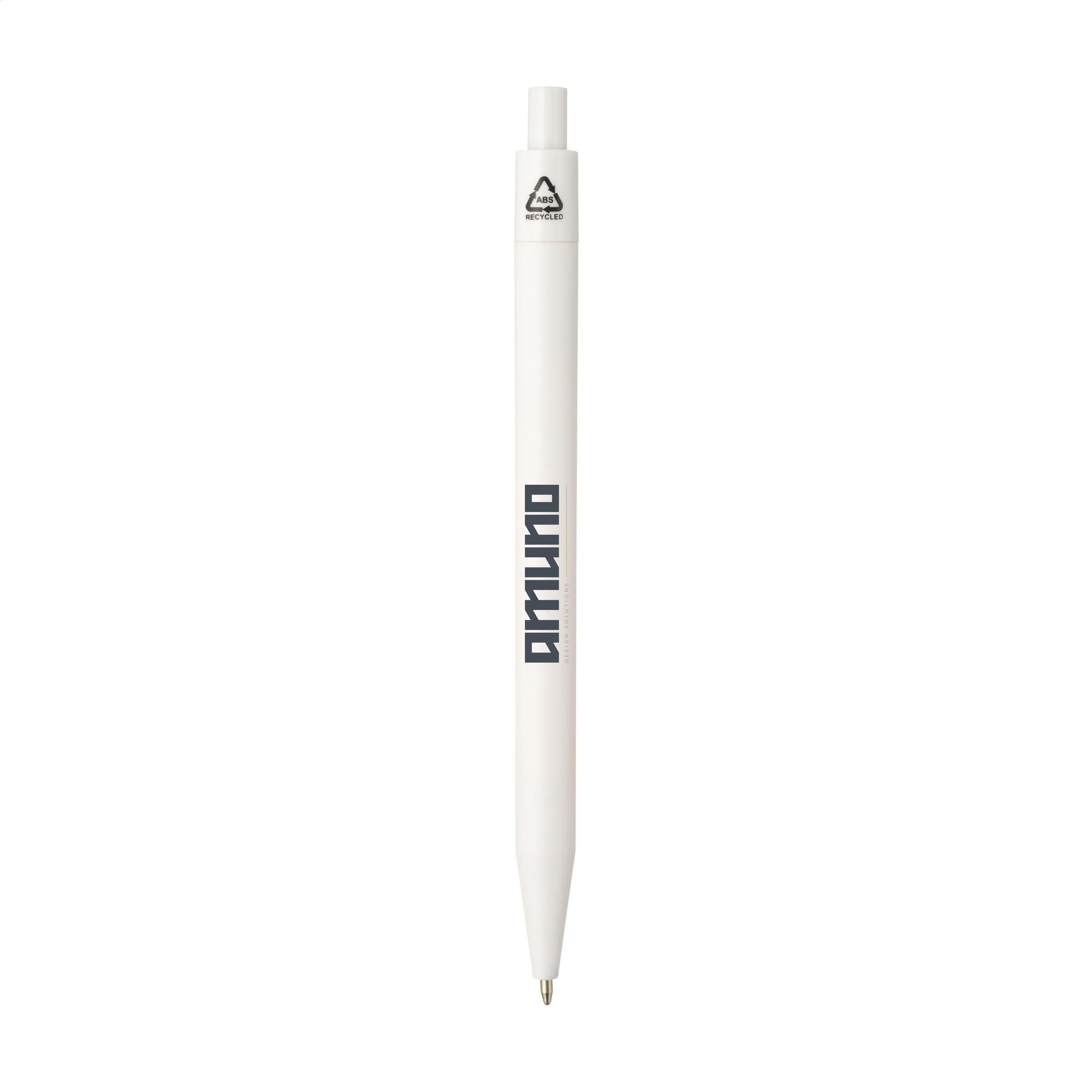 Stylo à bille à encre bleu avec un corps au design épuré, fabriqué à partir d'ABS recyclé à 100% et certifié GRS. Avec un clip généreux pour une impression bien visible. Certifié GRS. Matière recyclée totale : 83%.
