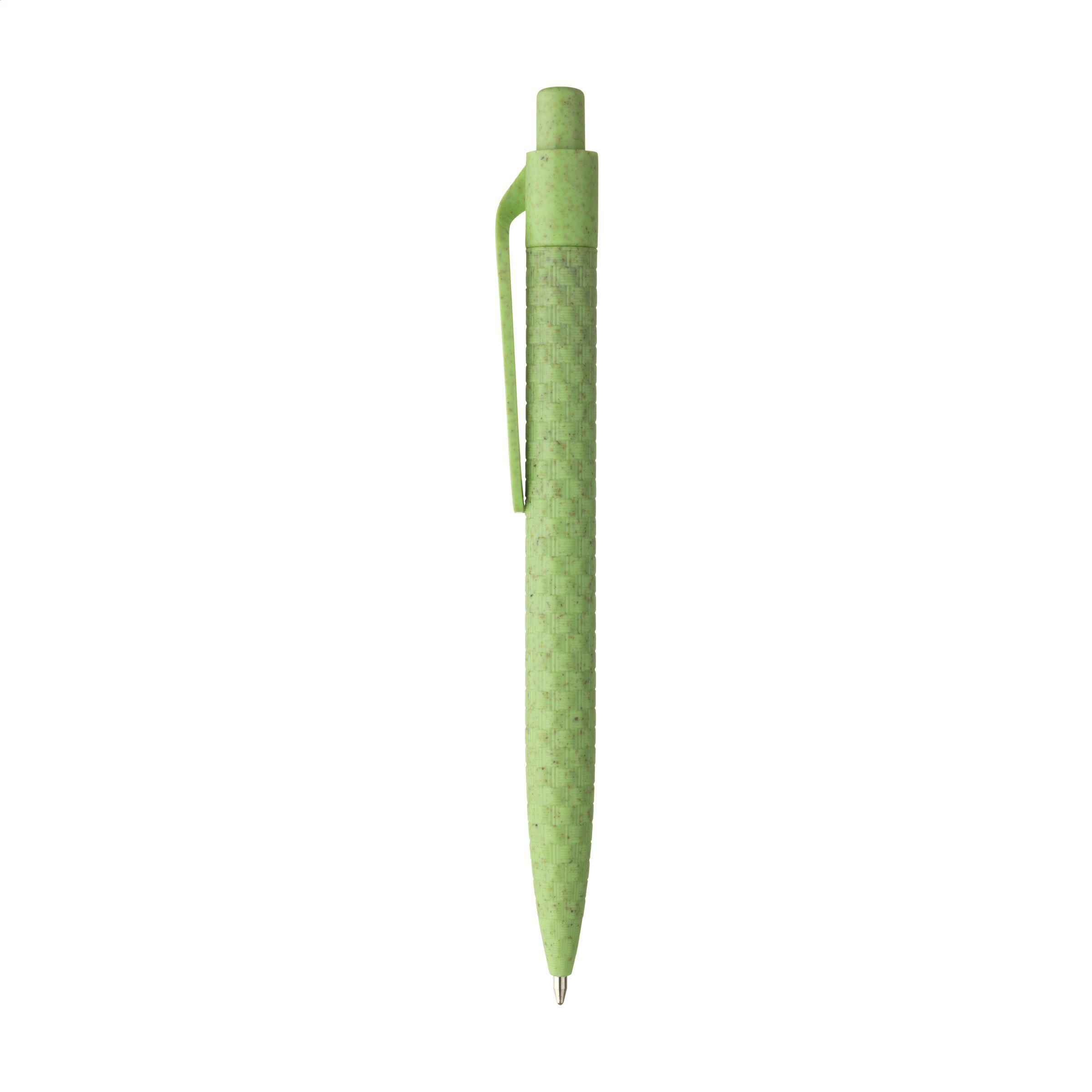 Stylo à bille écologique, composé à 60 % de paille de blé et à 40 % d'ABS. Le canon, le clip et le bouton-poussoir sont fabriqués à partir des restes de tiges de blé récolté. Le stylo dispose d'un clip assez large pour l'impression d'un logo ou d'un texte et il est livré avec une recharge d'encre bleue.
