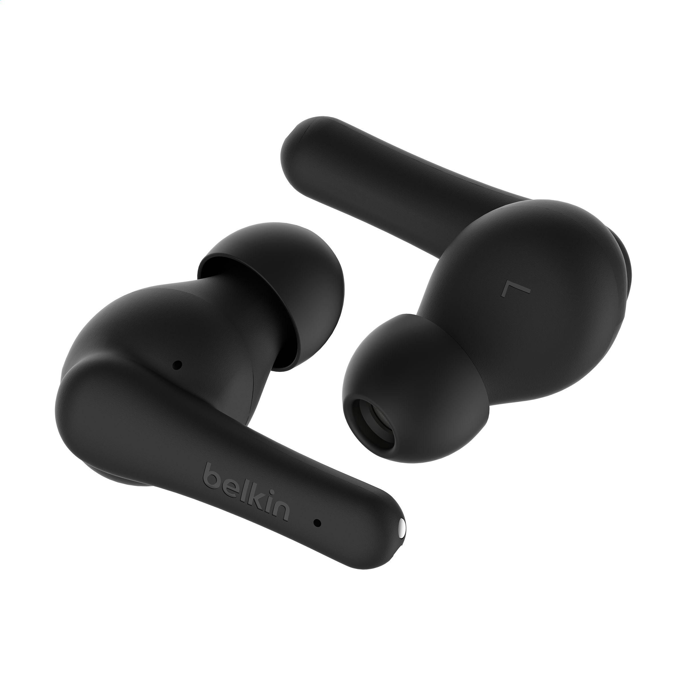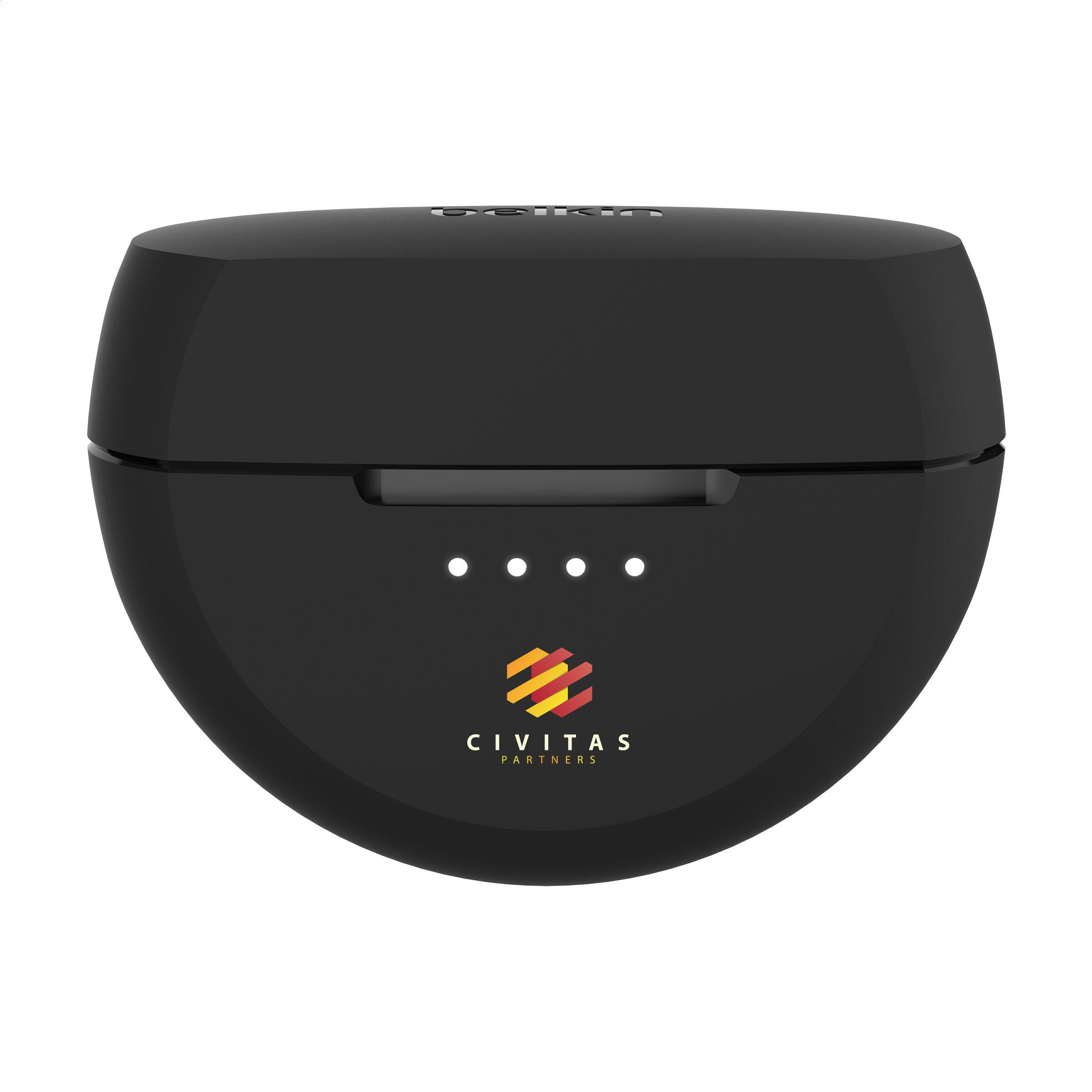 Écouteurs sans fil de la marque Belkin. Profitez pleinement de votre journée avec les écouteurs SoundForm Rhythm, avec connexion Bluetooth® et commandes intuitives. La technologie Clear Call Quality réduit les bruits de fond et la technologie Bluetooth Multipoint permet de connecter deux appareils. Vous pouvez écouter jusqu'à 8 heures d'affilée et bénéficier de 20 heures supplémentaires grâce au boîtier de recharge élégant inclus. Classé IPX5 : résistant à la transpiration et aux éclaboussures. Belkin Signature Sound pour un son hi-fi riche et équilibré. Recharge rapide : 10 minutes de recharge pour 90 minutes d'écoute. Connexion Bluetooth 5.3 fluide jusqu'à 10 m. Ce produit est fabriqué à partir de plastique recyclé. Mode d'emploi inclus.