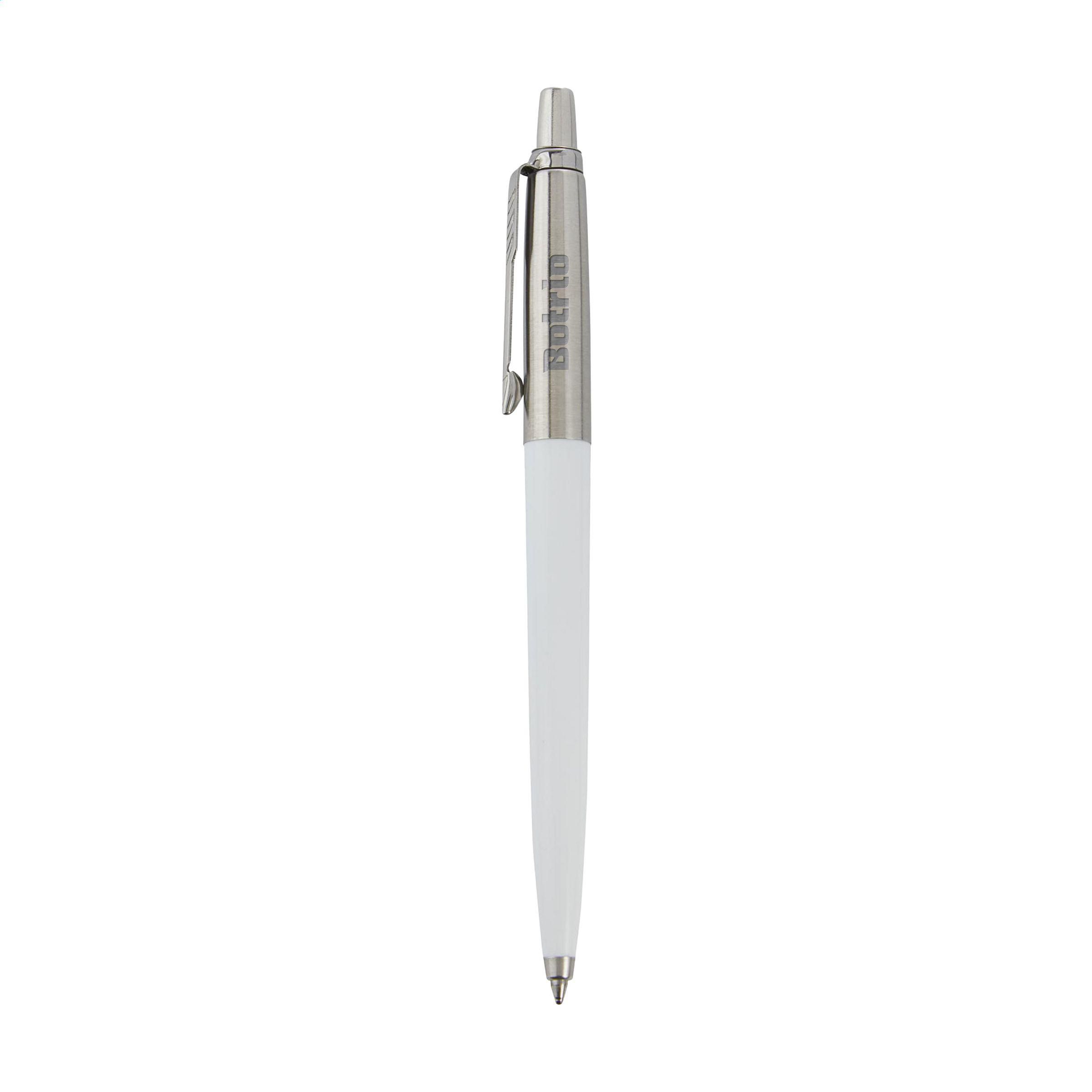 Stylo à bille à encre noire de la marque Parker. Le corps résistant aux rayures est fabriqué en plastique recyclé, tandis que la partie supérieure, la pointe, le bouton-poussoir et le clip à flèche iconique sont réalisés en acier inoxydable recyclé. Le stylo est équipé d’une recharge Parker pour une expérience d’écriture fluide. Un instrument d’écriture à la fois élégant et fonctionnel, parfait pour un usage quotidien. Livré dans une boîte-cadeau Parker. Fabriqué en Europe.
