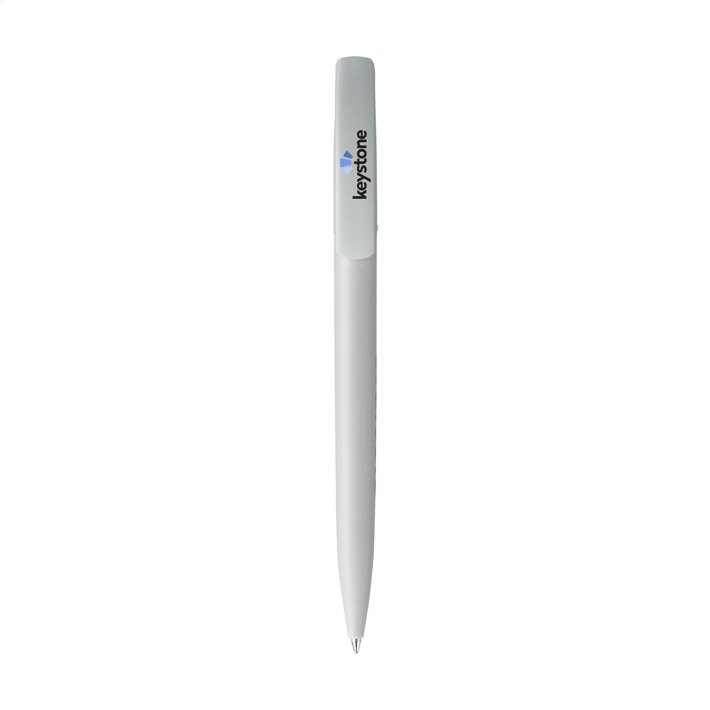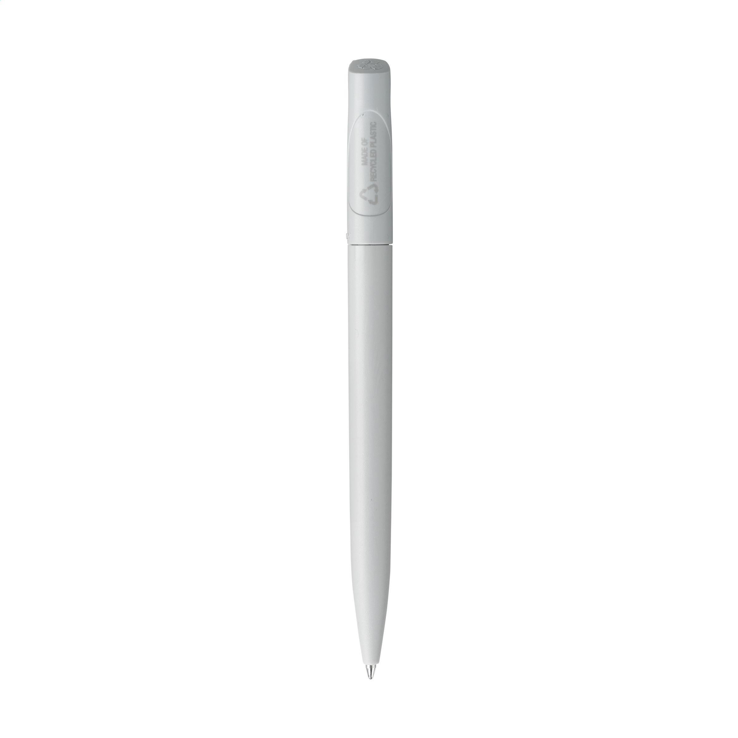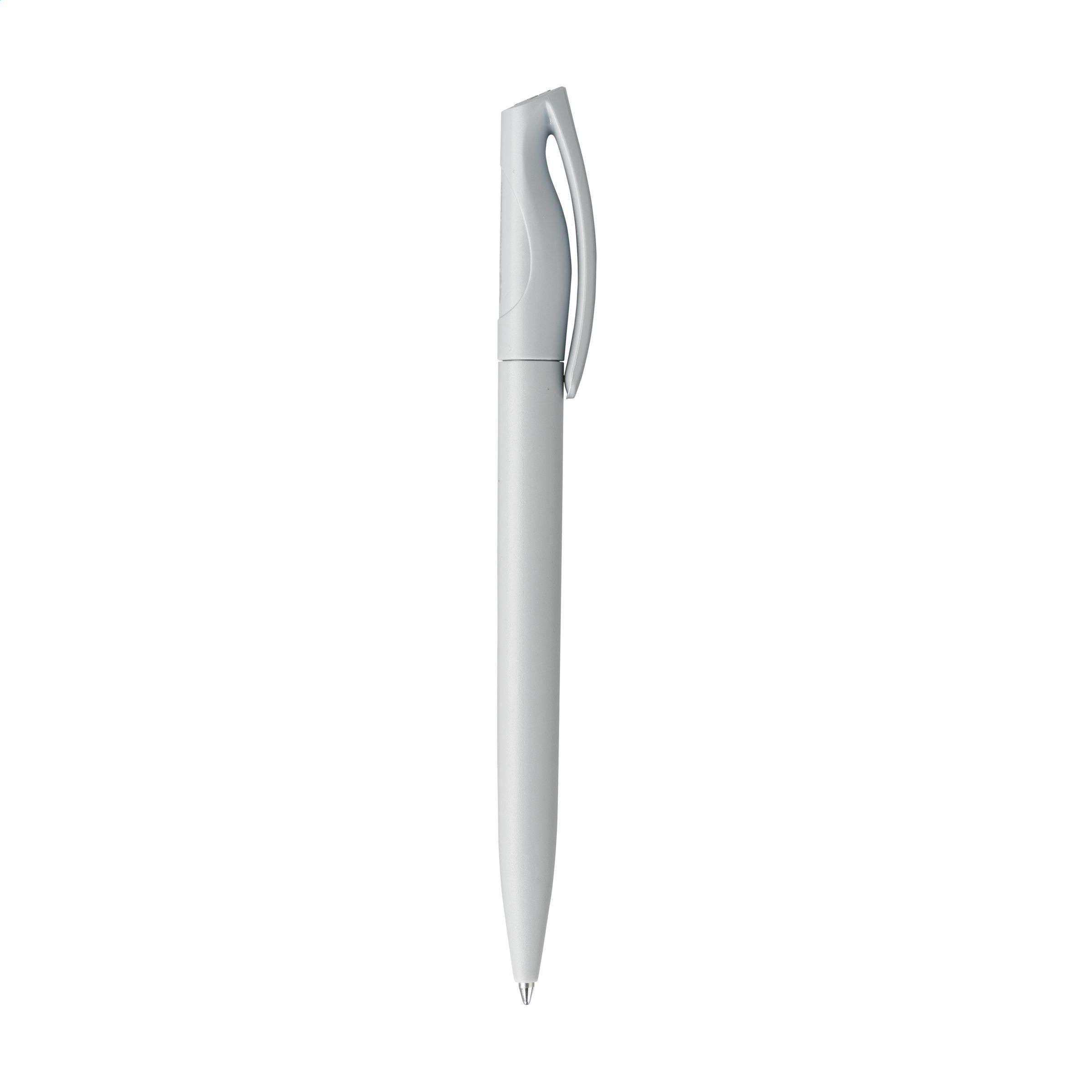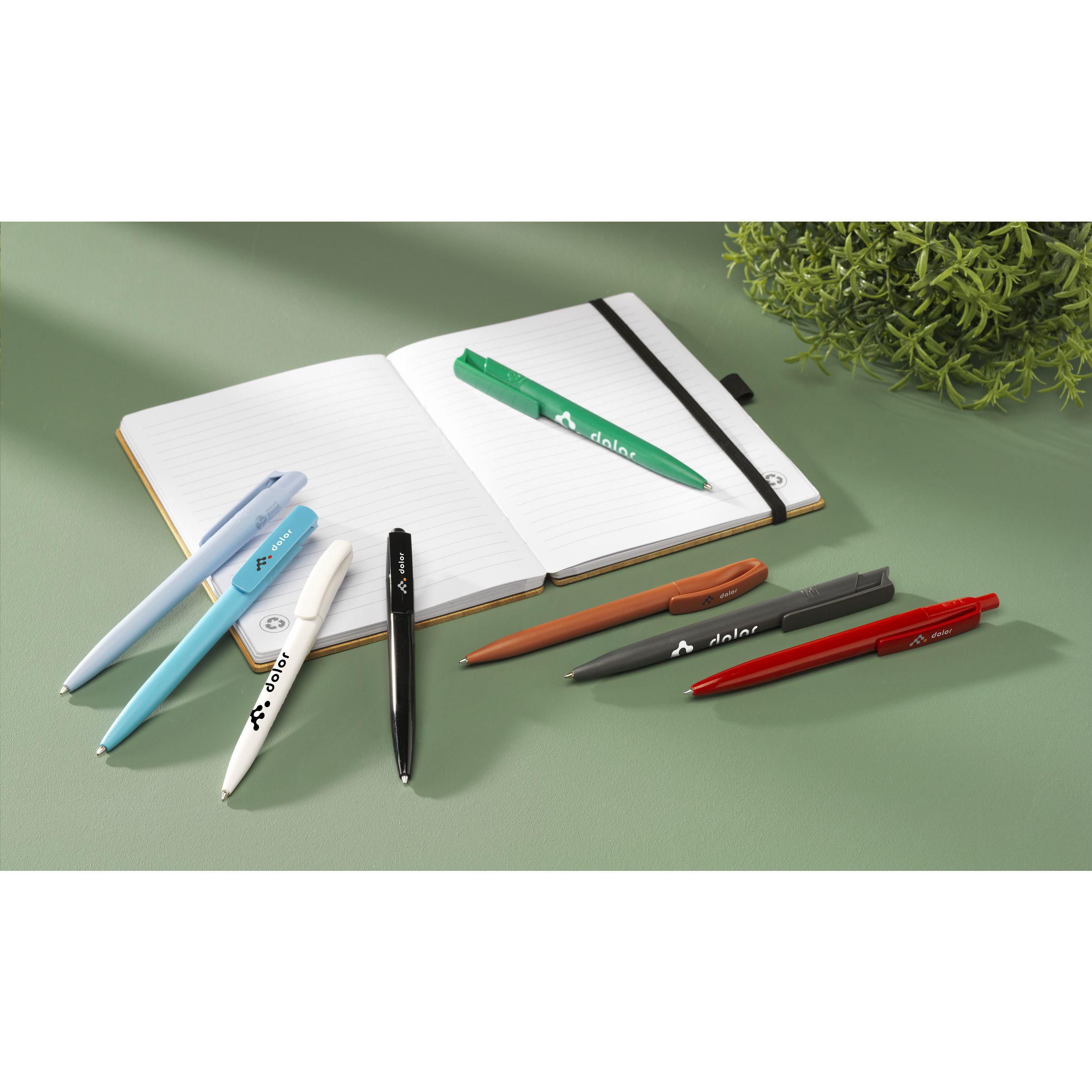 Stylo à bille à encre bleue de la marque Linoro. Design élancé, fabriqué en ABS recyclé. Doté d'un système rotatif-clic souple et d'un clip intégré dans la partie supérieure. La courbe subtile en forme de vague dans la partie supérieure confère au stylo une touche raffinée. Fabriqué en Italie.