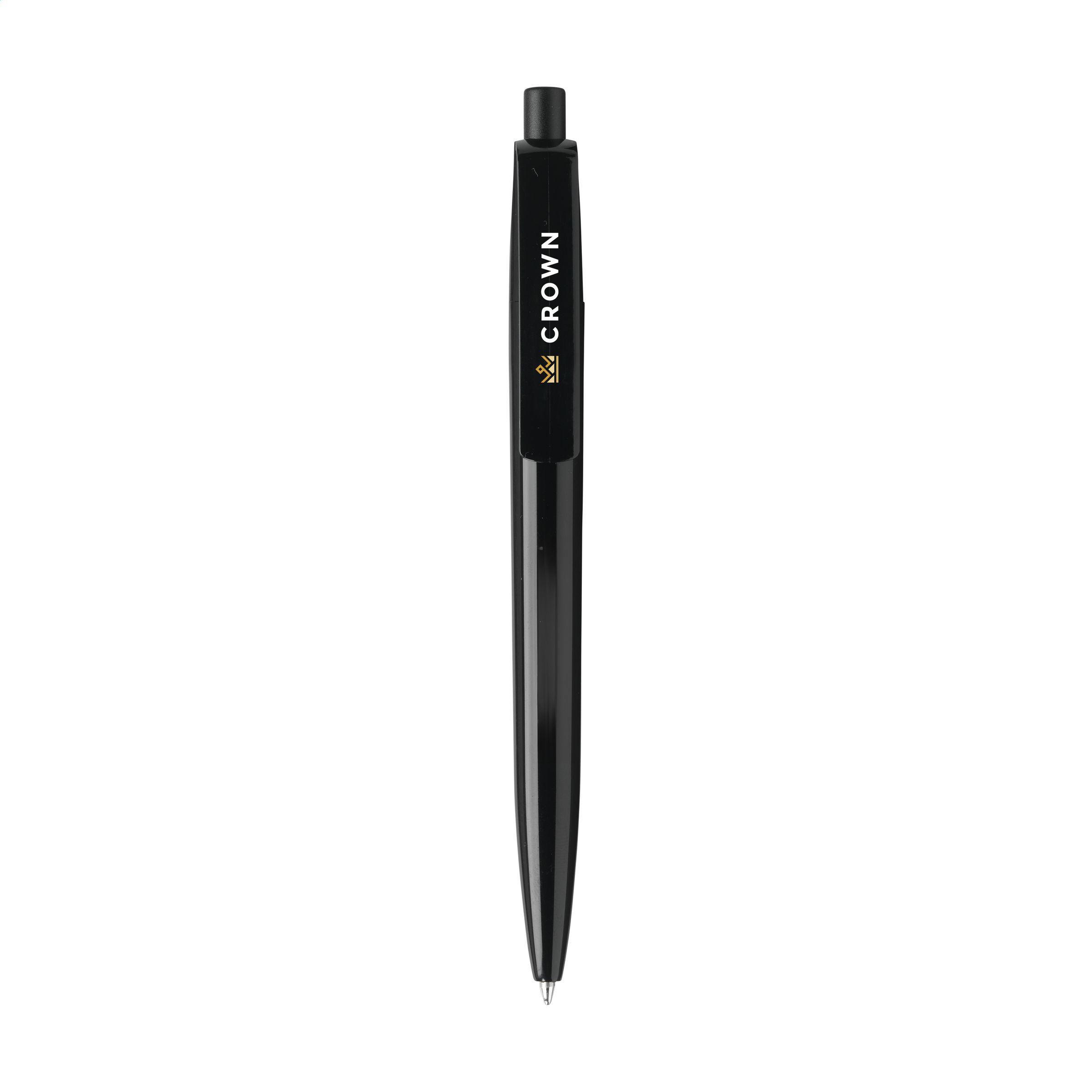 Stylo à bille à encre bleue de la marque Linoro. Fabriqué à partir de PET recyclé, il est doté d'un large corps brillant, d'un clip généreux et d'un bouton-poussoir mat. Le corps et le clip offrent une excellente visibilité à toute impression. Fabriqué en Italie.