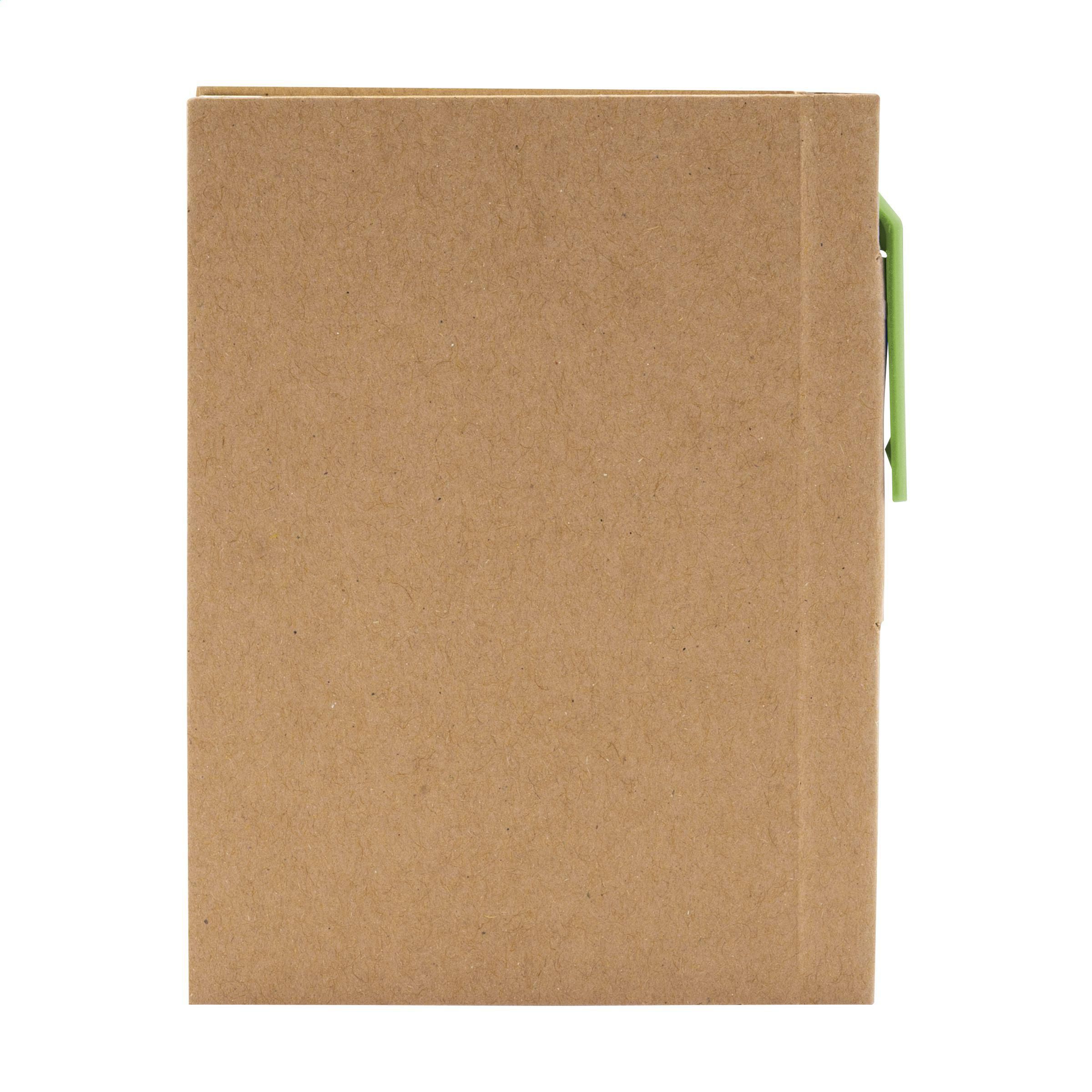 1. DETAILS DU PRODUITMini bloc-notes en matériau recyclé avec environ 80 feuillets, papier crème ligné (70 g/m²), couverture cartonnée et dos relié. Inclus : stylo assorti à encre bleue. Certifié FSC Mix. |