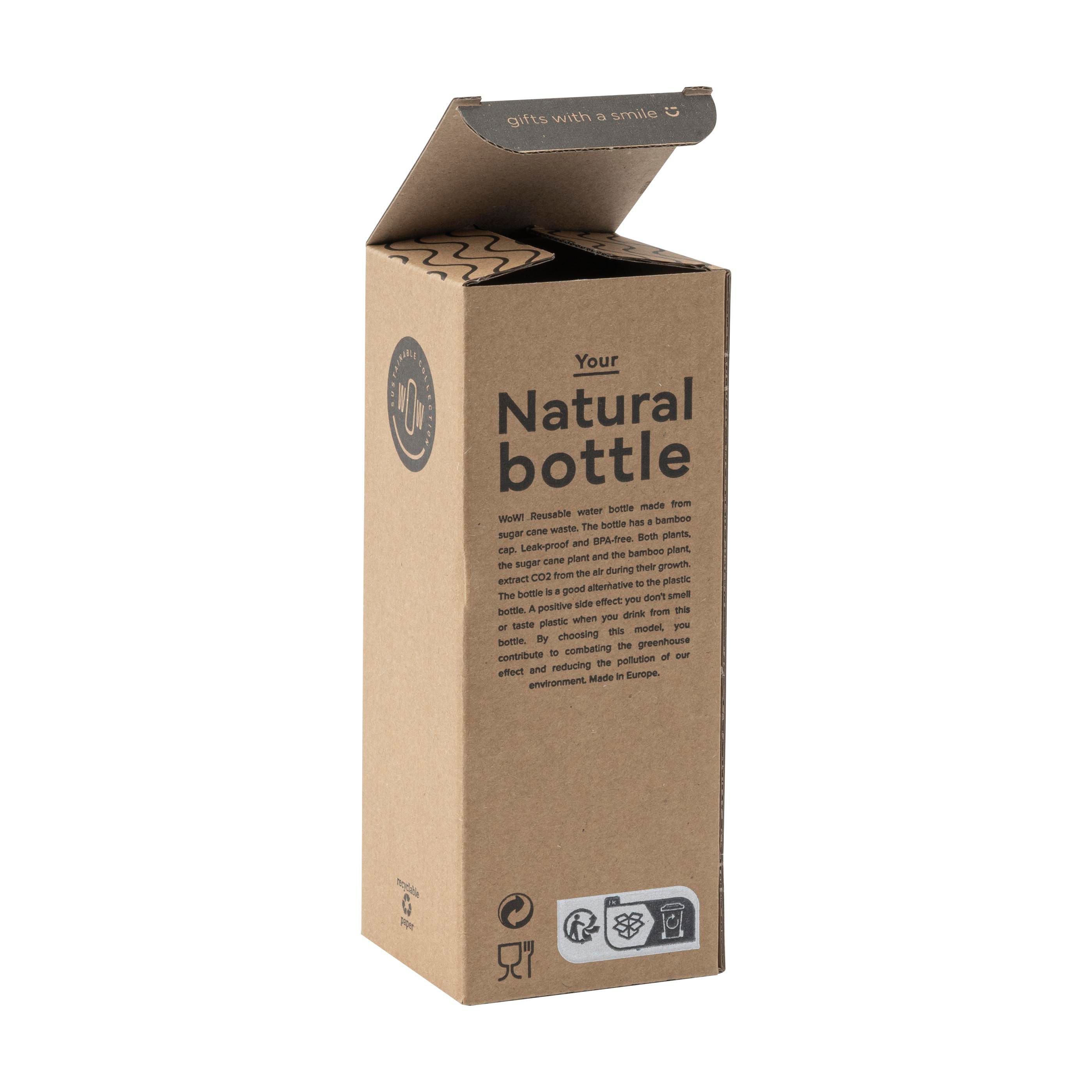 1. DETAILS DU PRODUITBouteille d'eau réutilisable fabriquée à partir de déchets de canne à sucre. La bouteille a un bouchon en bambou. Étanche. Ne passe pas au lave-vaisselle. Les deux plantes, la canne à sucre et le bambou, extraient le C02 de l'air pendant leur croissance. La bouteille est une bonne alternative à la bouteille en plastique. Capacité 500 ml. Fabriqué en Europe. |
