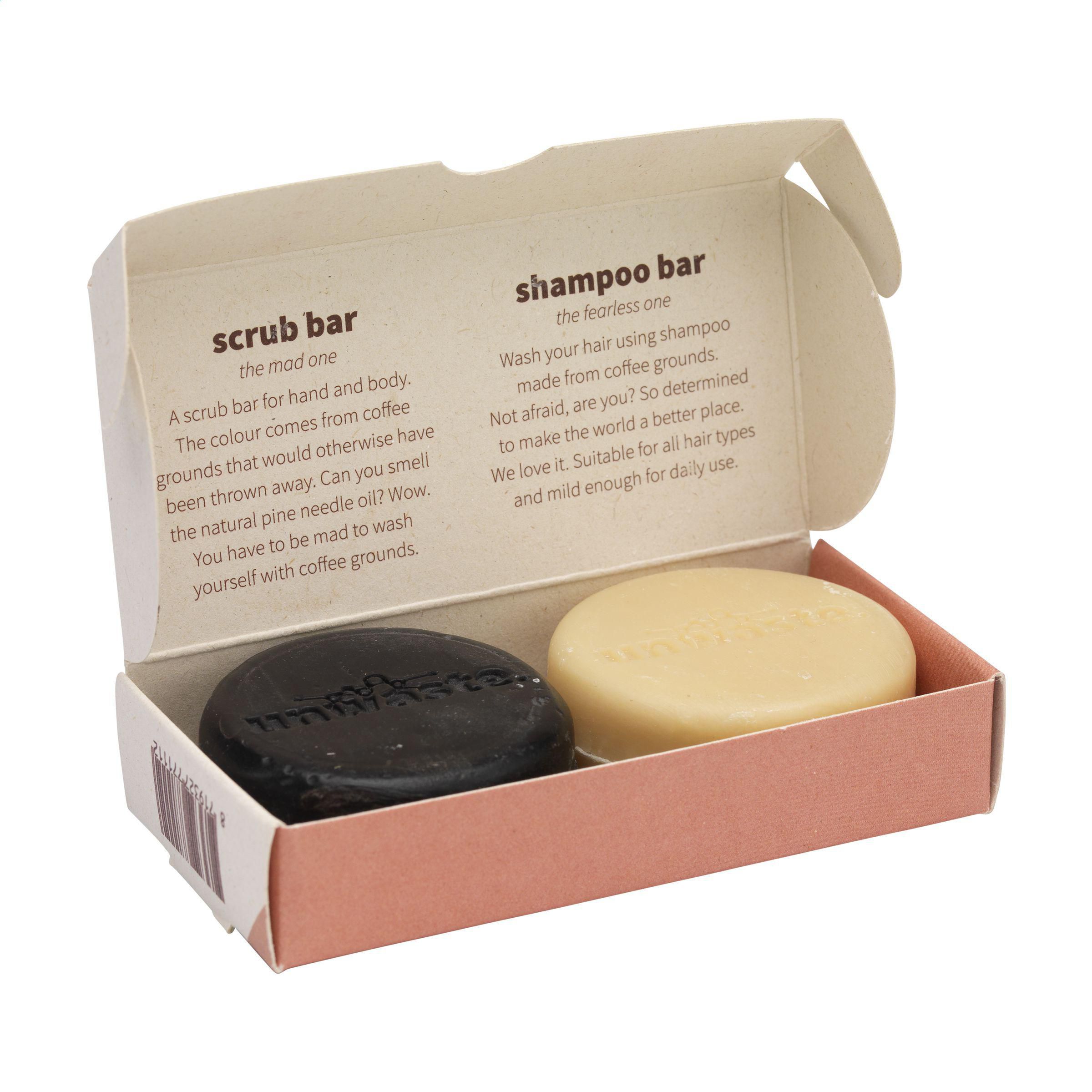 1. DETAILS DU PRODUITUn ensemble composé d'une gommage solide et d'une barre de shampoing dans un seul emballage. Fabriqué par la marque Unwaste. La barre de gommage est faite avec du marc de café et de l'huile de pin, la barre de shampoing est faite avec de l'huile de café. Caractéristiques : un agréable parfum naturel, le pouvoir nettoyant et la couleur du café. Les ingrédients sont d'origine naturelle. Les produits sont végan, sans cruauté et 100% (micro) sans plastique. Fabriqué en Hollande. Emballé par set dans une boîte composée à 100% de déchets agricoles. |